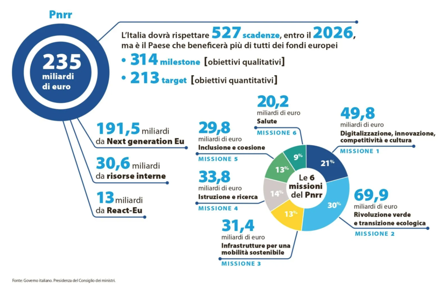 235,12 miliardi di euro saranno le risorse amministrate dall’Italia nell’ambito del Pnrr